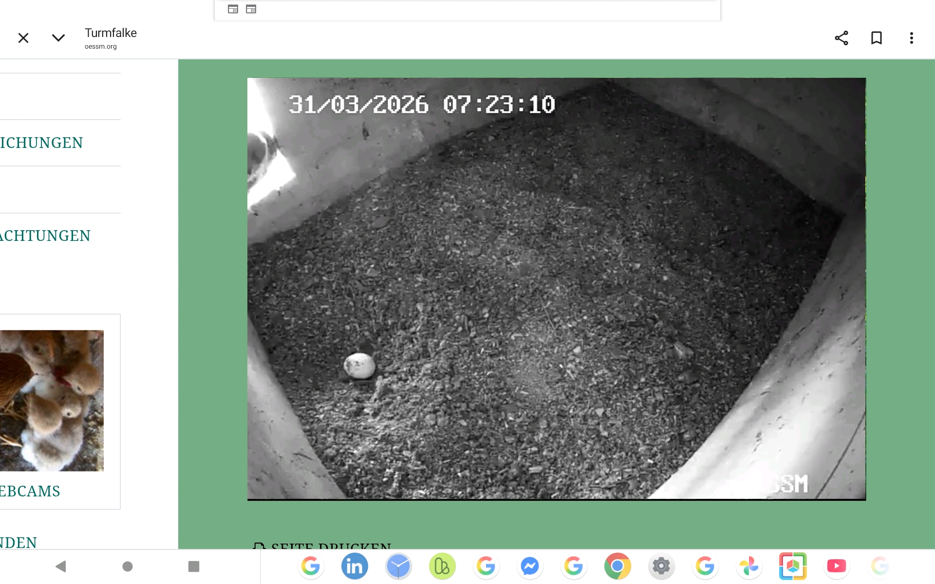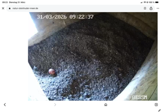 Ich habe gerade das erste Ei bei den Turmfalken im Nest entdeckt.