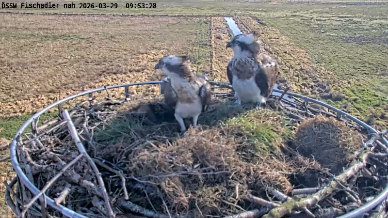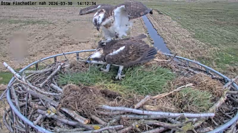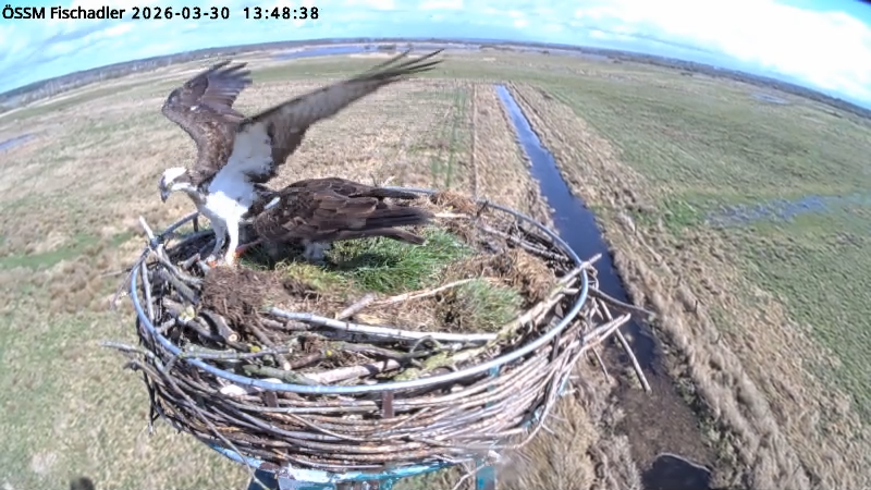 Gerade [28.03.2026, 14:30] waren hier zwei Fischadler im Nest.