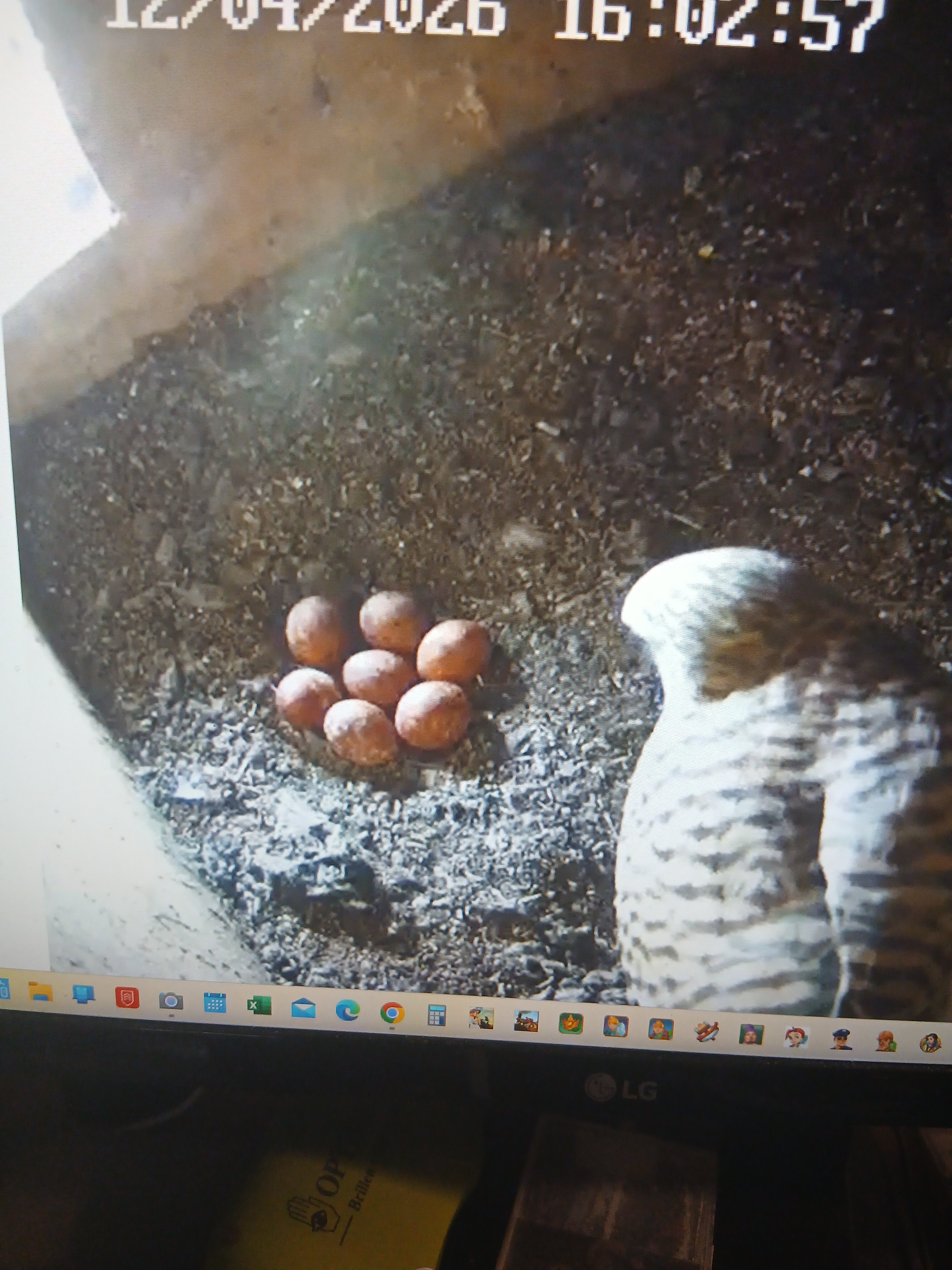 kann ich die Größe des Geleges von 7 (sieben) Eiern von gestern Abend Sa. den 11.04.26 nur bestätigen. Da ich nur einen ganz kurzen Augenblick einen Blick auf das Gelege werfen konnte und ich mir nicht zu 100% sicher war, ob ich mich nicht verzählt habe, denn ein solch großes Gelege ist hier eher selten, kann aber bei gutem Nahrungsangebot schon das eine oder andere mal vorkommen. Also habe ich mich gestern (11.04.26) doch nicht verzählt.