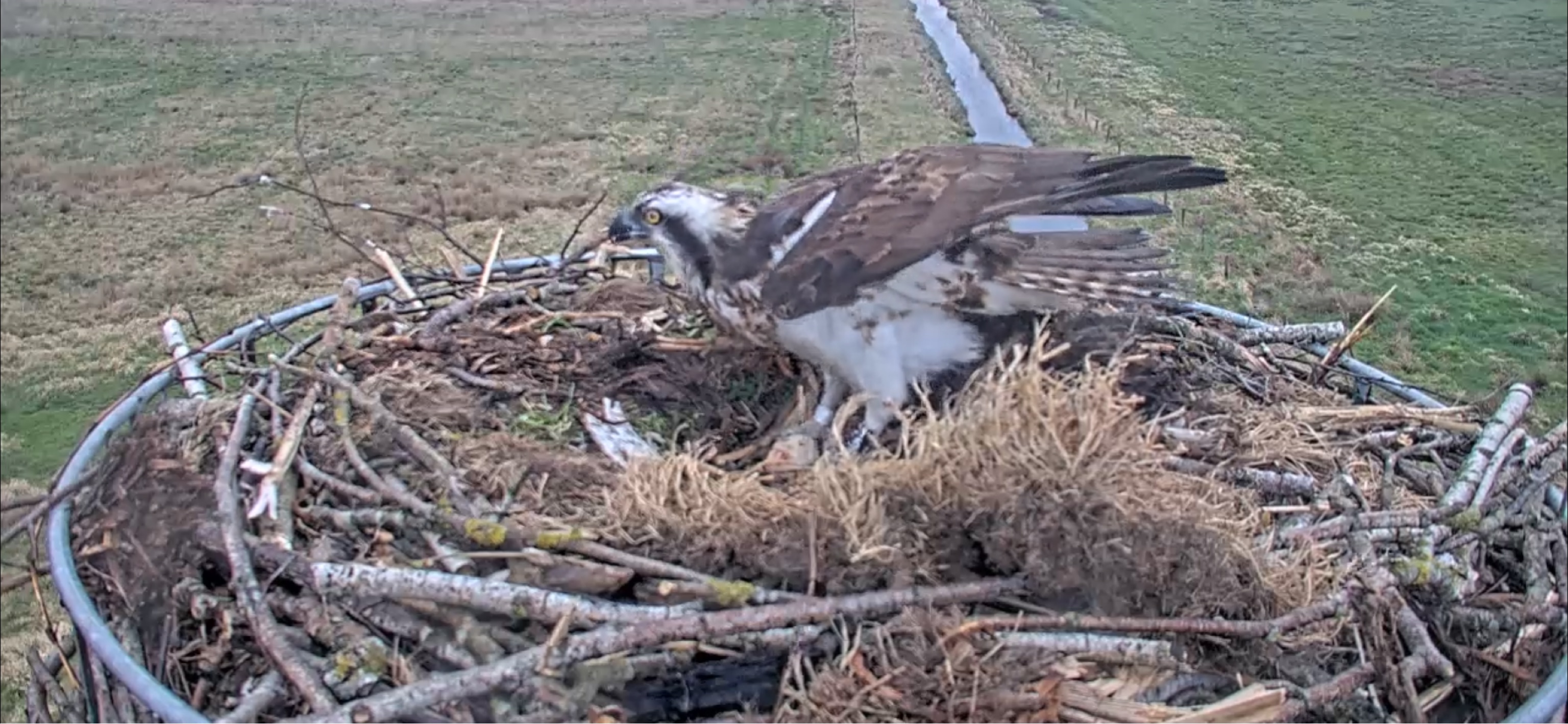 Erster Fischadler auf dem Horst vor der Kamera gesichtet